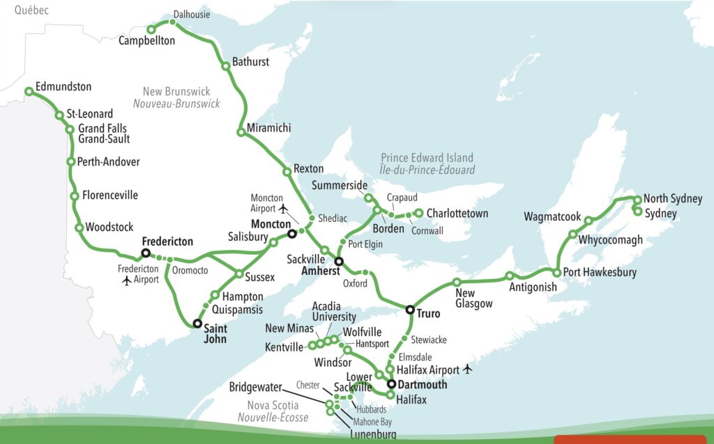 夕方、本日最後の長距離バスがあるのを知り飛び乗りプリンスエドワードアイランド州へ