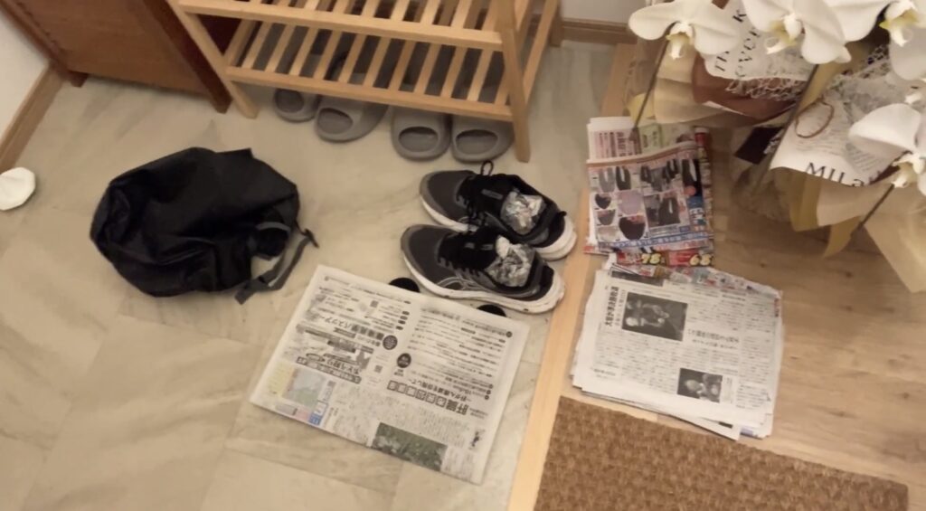 前に出会った人に「濡れた靴に新聞紙をぎゅうぎゅうに詰めておけば次の日には乾くよ」と教えてもらい非常に助かった!新聞紙はとても水分を吸い取るため靴が乾く。