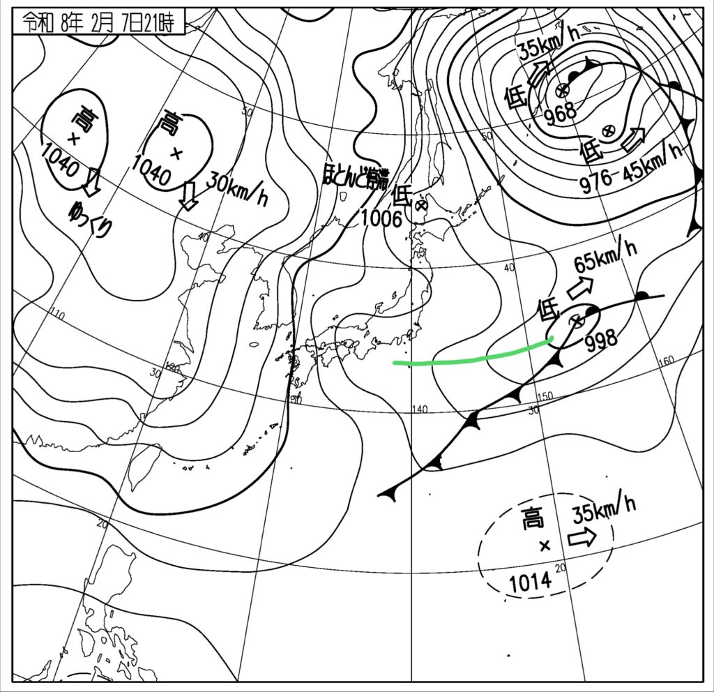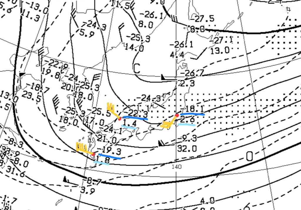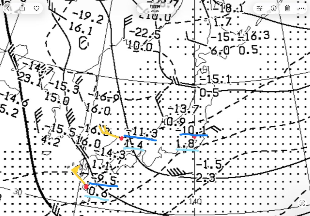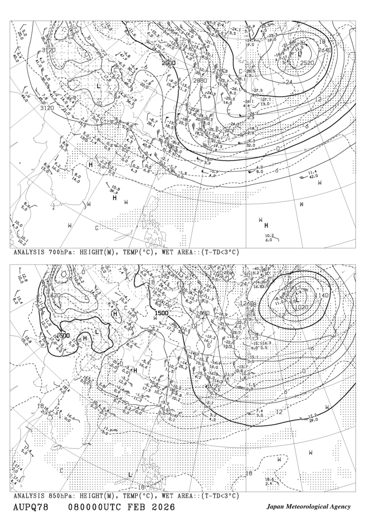 ここで8日朝9時の高層天気図