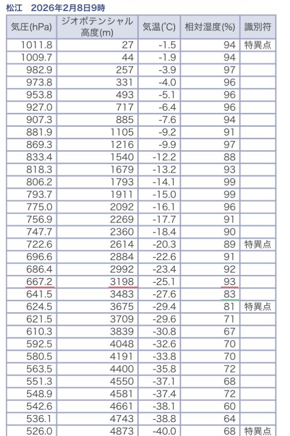 8日9時の松江の高層気象観測